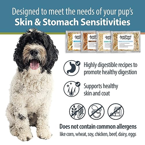 Specification: JustFoodForDogs Frozen Fresh Dog Food for Sensitive Skin & Stomach Human Grade Dog Food Variety Pack, Complete Meal or Dog Food Topper, 18 oz (Pack of 7)