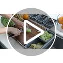 HANDS-FREE STRAINING: Strainers nest into the end of the board for cleaning or straining directly into the sink or catch — hands-free!